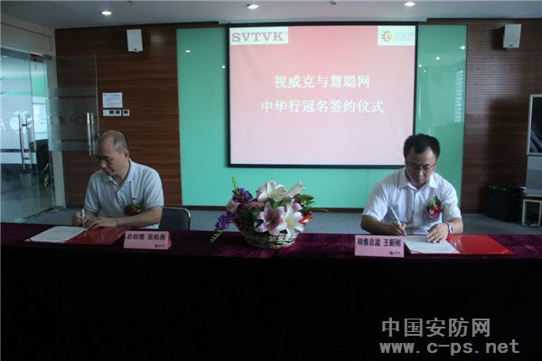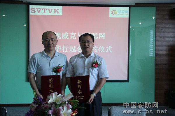 视威克总经理巫松亮与慧聪安防网销售总监王新刚举行签约